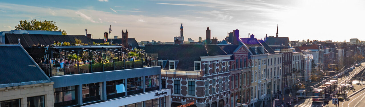 Onze Rooftop bar is de plek om te genieten van muziek, cocktails, sfeer, snacks, de zon en natuurlijk het geweldige uitzicht over de binnenstad van Den Haag.
